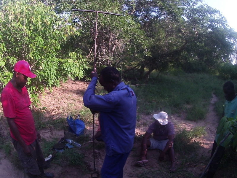 Moçambic. El context és la d’uns habitants de la comunitat que estan ajudant-nos a realitzar un assaig trado-manual, la implicació de a comunitat amb nosaltres, amb el projecte comú de portar aigua a la comunitat es enorme.