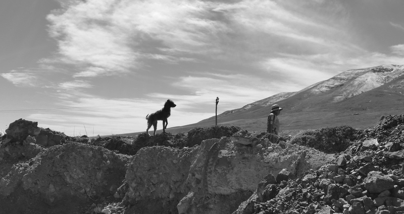 Bolívia. Aquesta imatge ens mostra que els nens treballen fora de les mines. Moltes vegades, estan acompanyats pels seus animals mentre separen el mineral.