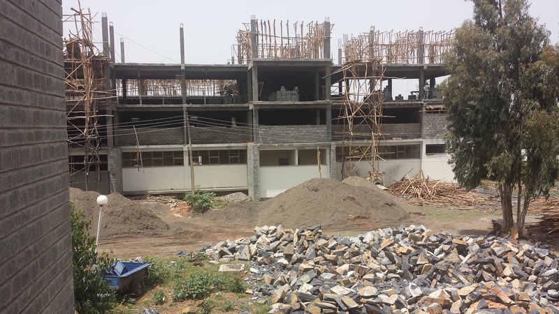 Etiòpia. El campus del MIT està constituït per 5 edificis. La foto està feta des d’un d’ells i hi podem veure que s’està posant en marxa la construcció del 6è. A la part inferior dreta de la imatges s’hi veu un picapedrer amagat darrere un mar de pedres. Una de les coses que ens ve a la memòria quan pensem en el projecte de l’estiu passat és el constant repicar dels picapedrers., Es tracta d’una feina monòtona molt dura i més si es té en compte que ho feien tot manualment (sense cap mena de protecció ni a les oïdes ni a les mans). D’altra banda, la foto pretén mostrar les particulars bastides que tant ens vénen a la memòria quan pensem en Etiòpia. Esperem que l’estiu que ve aquest 6è edifici estigui ja acabat.
