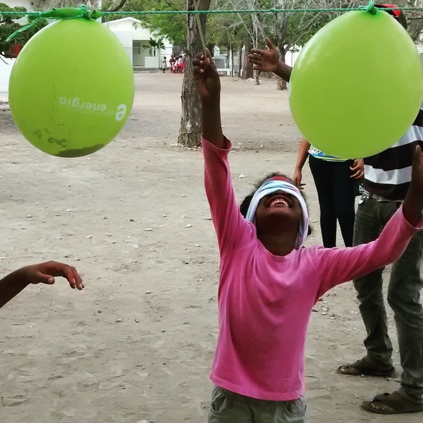 República Dominicana. Aquesta fotografia demostra clarament la felicitat que expressen els nenes dominicans quan, durant un parell d’hores per la tarda, els fem jugar, córrer i passar-s’ho bé. I és que no cal gaire cosa per fer feliç algú: en aquest cas ho veiem amb un globus i una mica de faria; i ganes, moltes ganes de passar-ho bé.