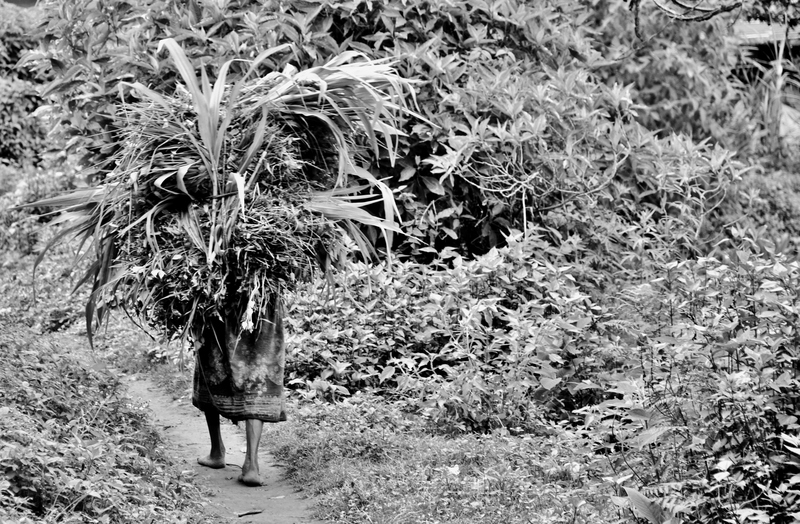 Nepal. La força de treball no té edat: des de ben joves i fins que el cos els ho permet, les dones de les comunitats rurals de Bhimphedi carreguen amb el dinar de les búfales que els donaran llet per poder col·laborar en la cooperativa agrícola Agragaami.