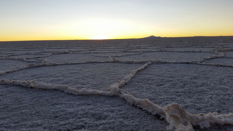 Bolívia. Aquesta imatge està feta al Salar d’Uyuni, el salar natural més gran i més alt del món. Aquestes marques que veiem a la imatge, són típiques d’un llac que s’ha dessecat. La seva formació encara és un misteri, i permet a la gent i als seus visitants imaginar o pensar en el perquè d’aquestes formes i com s’han format, sempre deixant el misteri com una curiositat.
