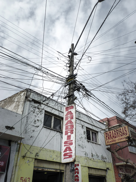 Xile. Lluny de la capital, la manca d’ordre i planificació és tan comú que esdevé transversal, els pals de telèfon en són una mostra.