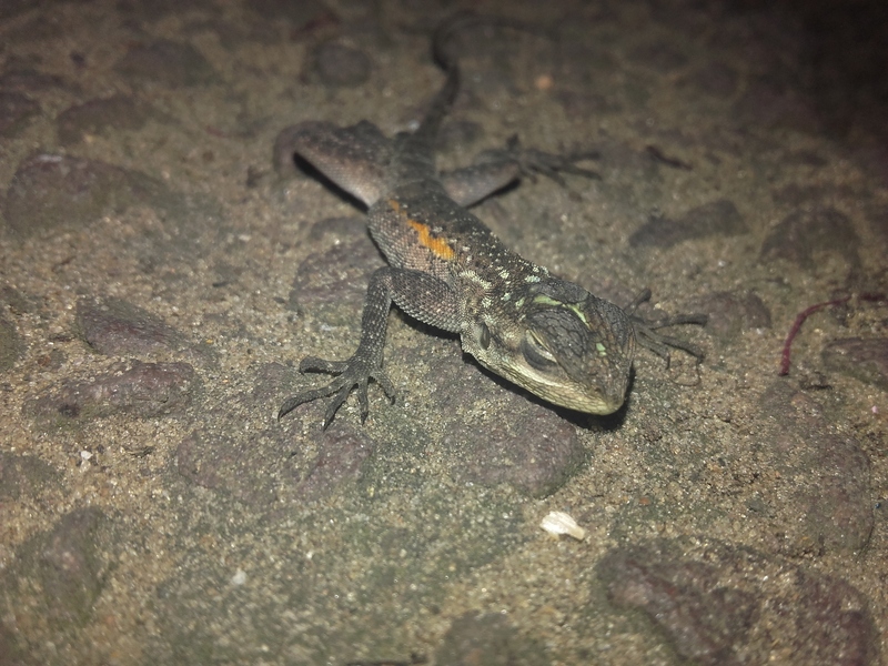 RD Congo. En aquesta foto podem apreciar una (salamandra o llangardaix) que veiem cada dia a tot arreu (sobretot mentre esperaven que el cotxe ens recollís a la casa on dormíem). Lo curiós d’aquest animal és el seu tamany i colors llampants que, nosaltres provenint d’Espanya estem acostumats a llangardaixos bastant més petits.