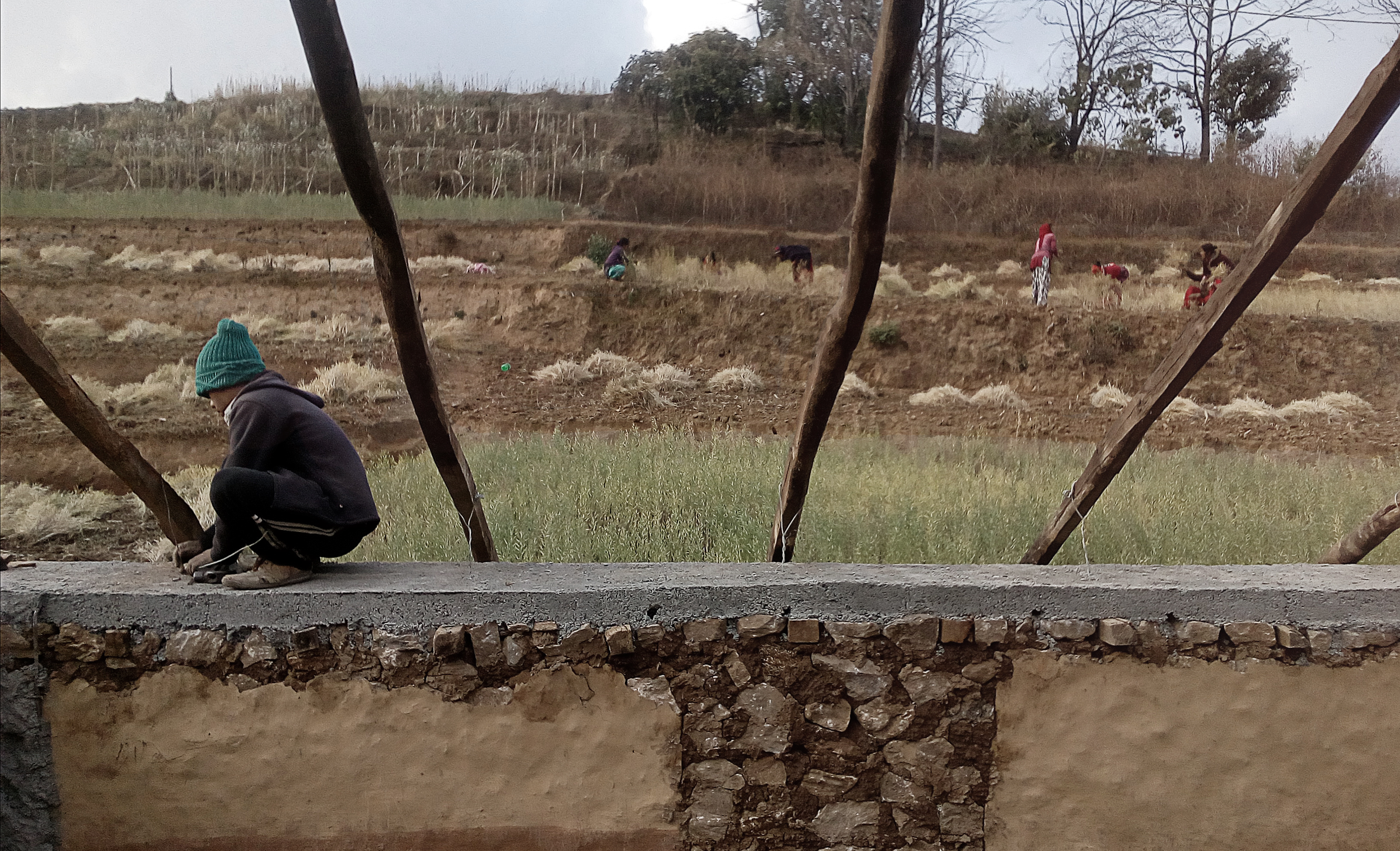 NEPAL. Hirakumari em tapava un dia de febre, Nirmala, desperta cada dia a les quatre de la matinada, munyia les vaques i al matí em donava un tassó de llet, una llet que no digeria l’estómac, sinó el cor. La seva feina diària és desplaçada a una vida quotidiana, lluny de l’entès com a laborable, lluny de ser mistris,… en la preparació del sostre i fase final de construcció es deixa entreveure aquesta activitat pausada, constant, silenciosa… encoberta.