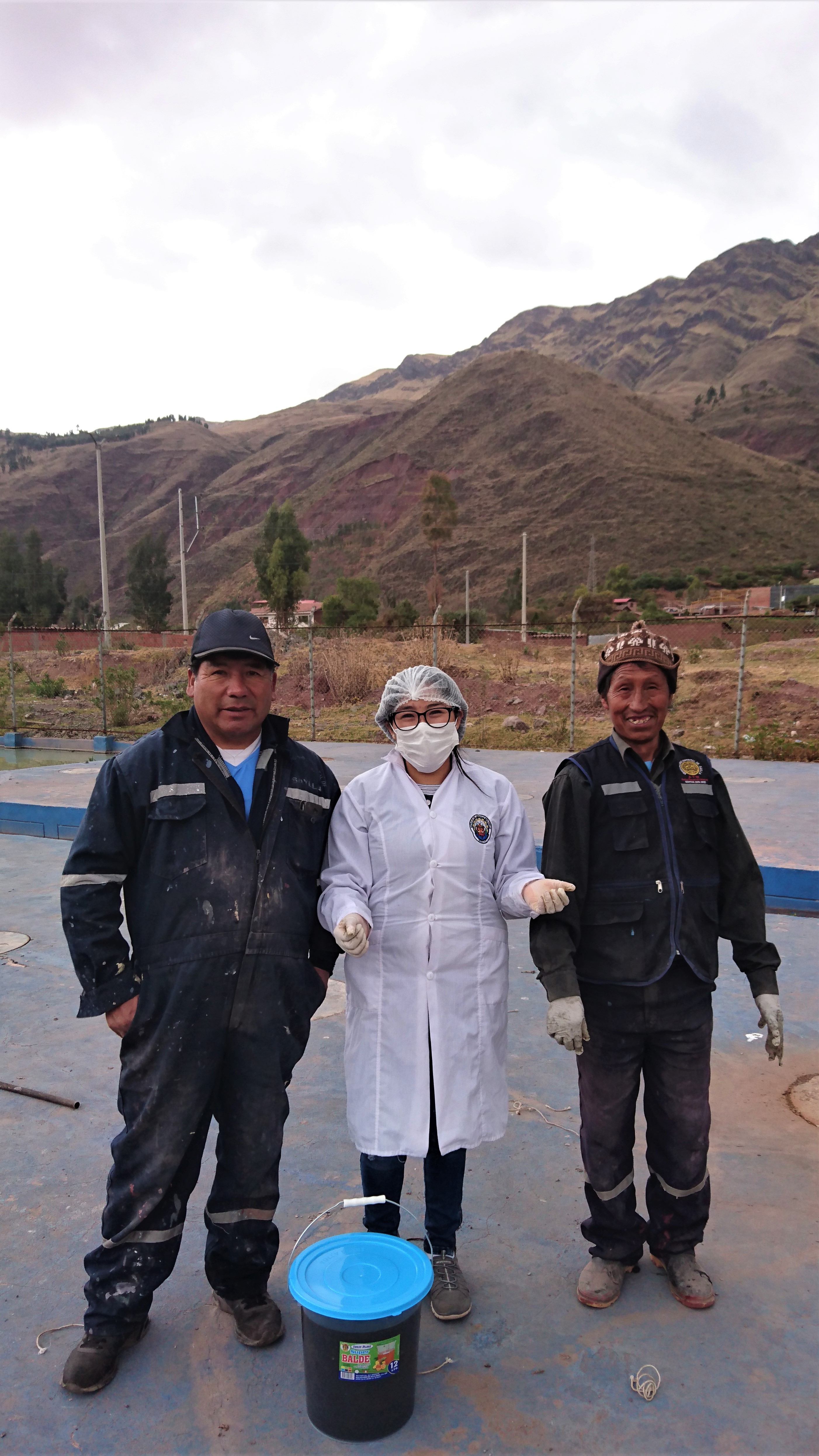 PTAR de Saylla, Cusco. "Un dia de treball, pendents del clima la pluja i vent dificultant-nos la feina. Recollint mostres de fangs dels digestors anaerobis on hi estem drets, gràcies a l’Estevan i el seu company, encarregats de la PTAR(Planta de Tractament d’Aigües Residuals), i l’Aydee. És una estudiant de biologia que ja va ajudar l’any passat a l’inici del projecte, i aquest any ha tornat a col·laborar. Gràcies a totes aquelles persones que han fet possible que aquest projecte tirés endavant.