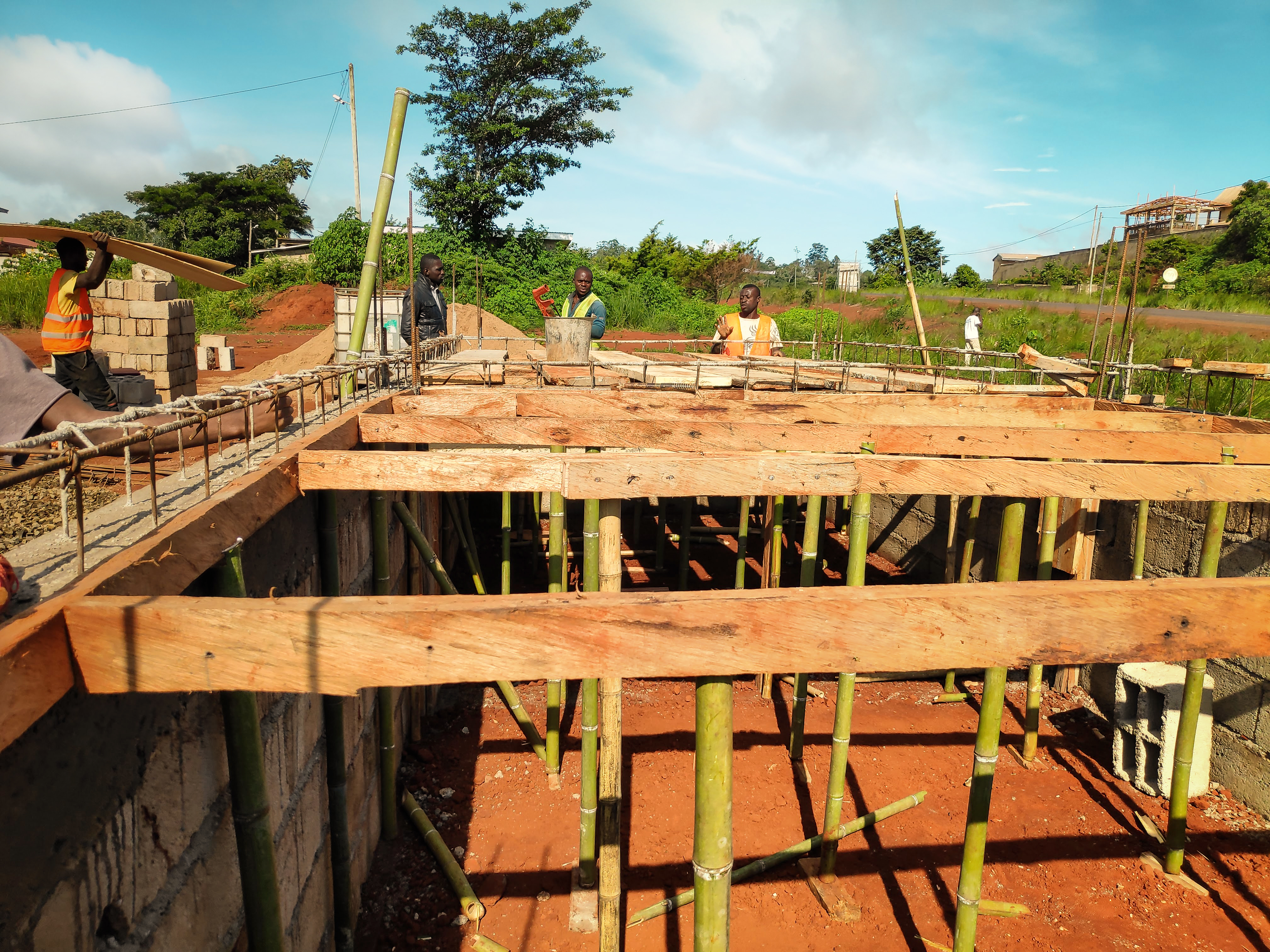 Camerun. És enriquidor aprendre les formes de pensar i fer d’altres cultures; les tècniques de construcció s’adeqüen al material local. Els treballadors camerunesos treuen profit de les resistents característiques del bambú per fer les plantes de la torre d’aigua.