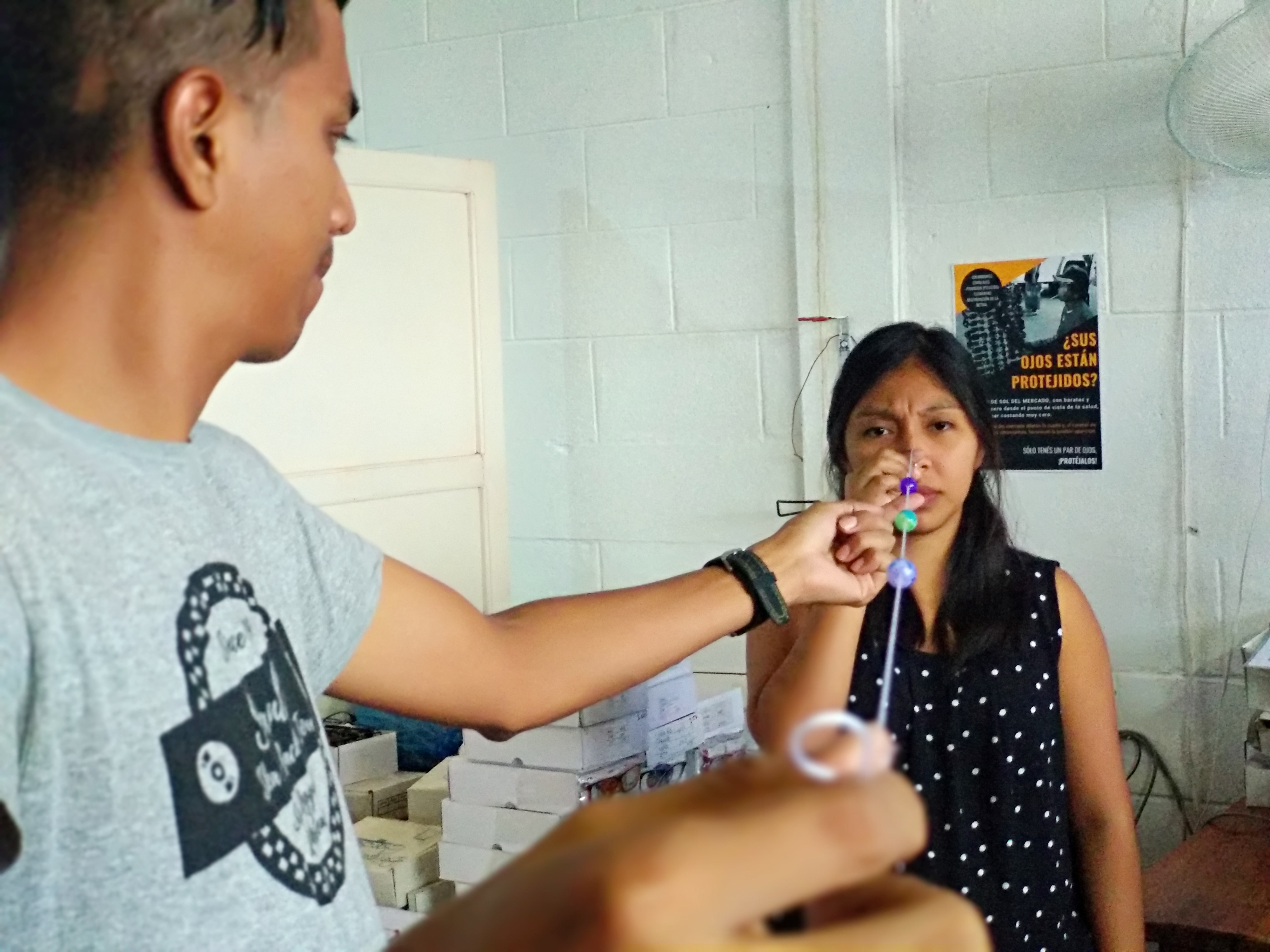 Nicaragua. Treballadors de l'Òptica Solidària de Granada formant-se en l'ús de la corda de Brock, tècnica que permetrà tractar desviacions oculars.