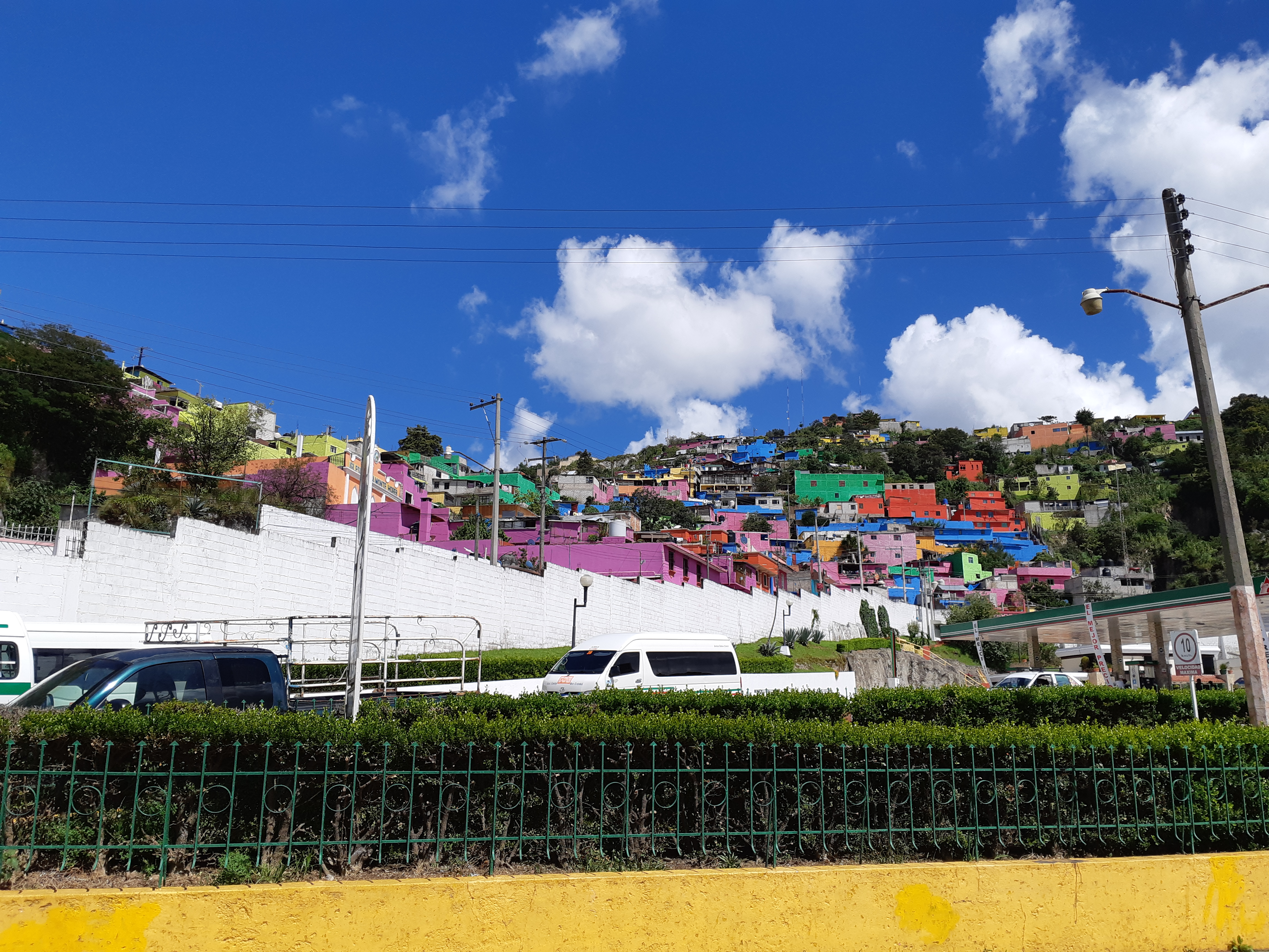 Mèxic A San Cristóbal de las Casas (Chiapas), com en totes les ciutats mexicanes, hi ha colònies, altrament dits barris a casa nostra. Aquesta colònia crida l’atenció pel mur blanc que la rodeja i les cases de colors diversos, tan diversos com la gent que es troba a dins. Mentrestant, a peu de colònia, la vida segueix circulant i el cel segueix tenint el mateix blau, sobre el cap de tots nosaltres.