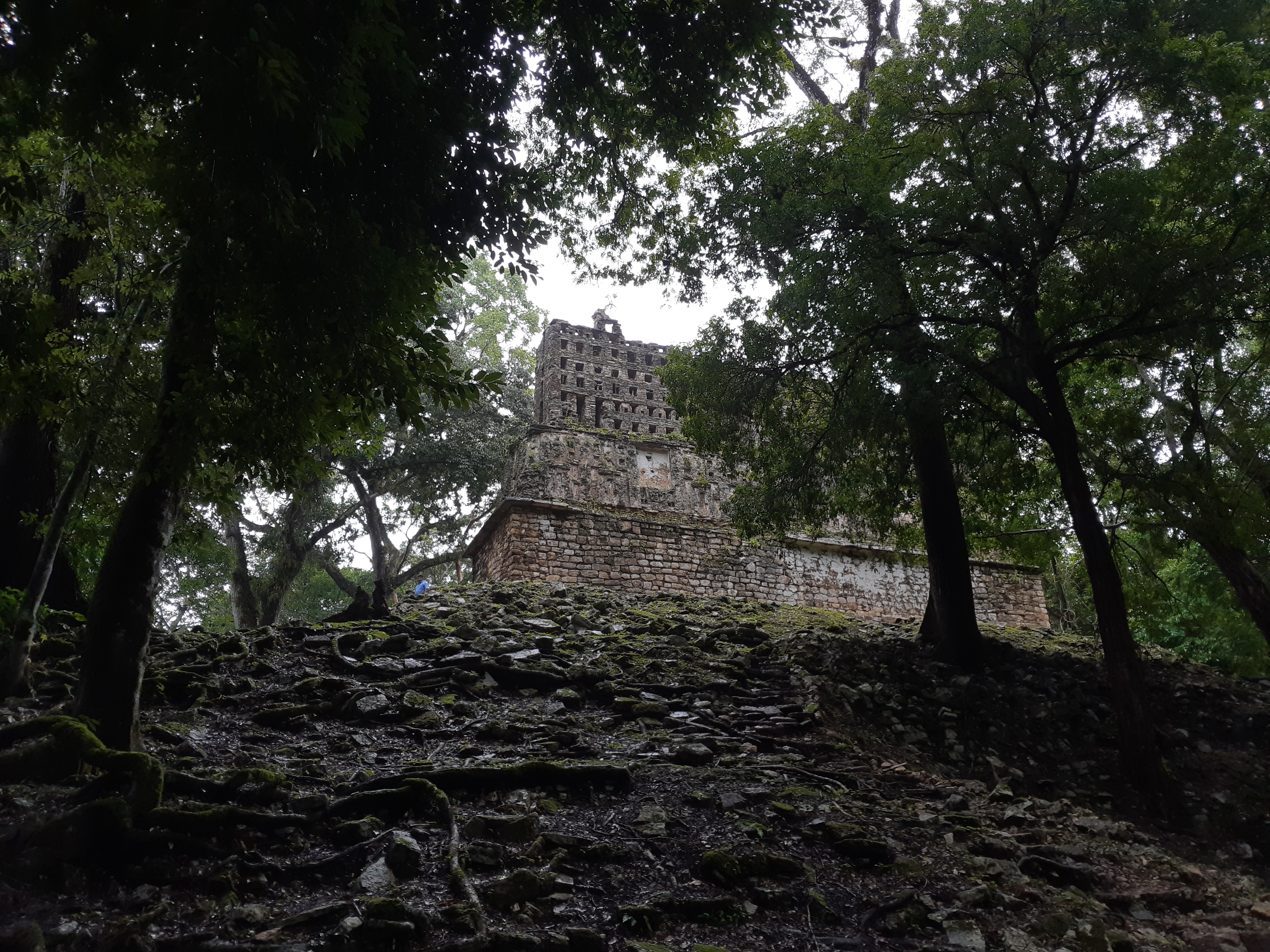 Mèxic. Temple a Yaxchilán (Chiapas). En un dia rúfol, molt gris i plujós, la selva crea un entorn fosc i feréstec. La pujada fins el temple, on molts anys enrere es feien sacrificis humans, arrencant cors i ungles per garantir el cicle de la vida, esdevé feixuga i el petit turó, cobert de molsa i pedres, convida a la deserció. Saber-ne certes coses sobre l’ús dels espais canvia radicalment la percepció que en tenim d’ells.