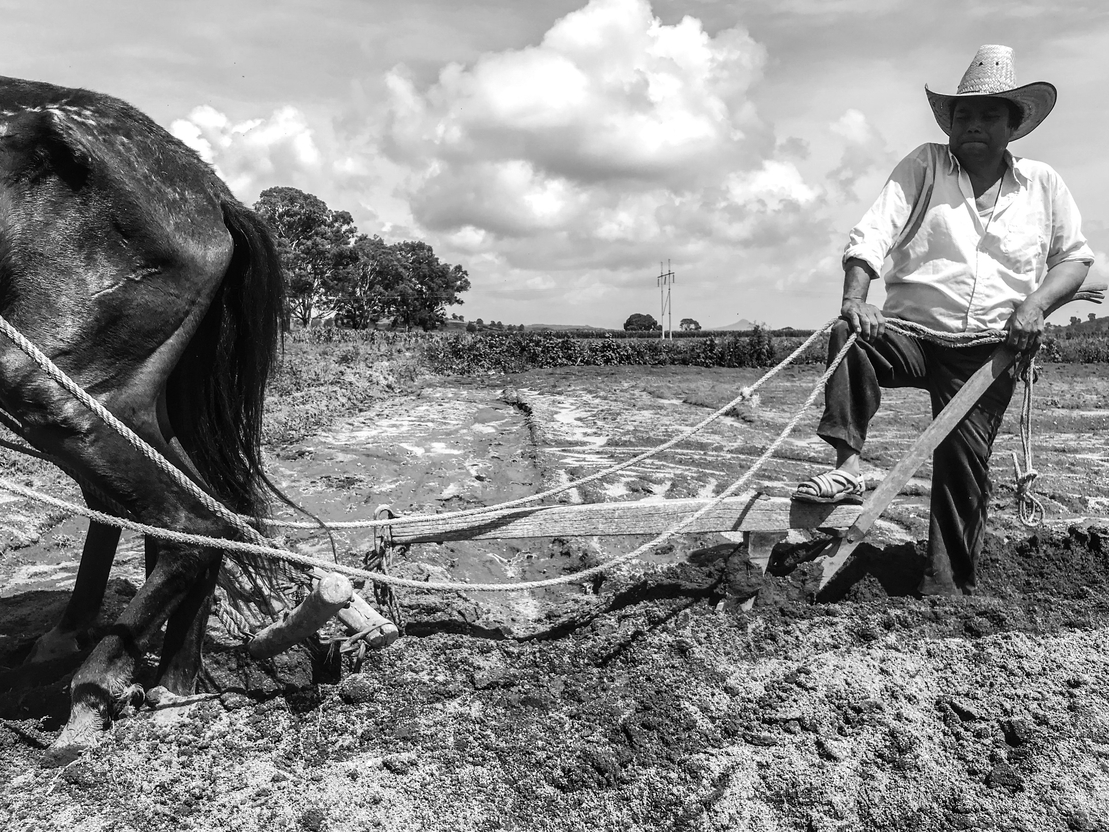 GUANYADORA 2N PREMI. Mèxic. "El 75% de la población de Santa Isabel Cholula, Puebla, trabaja en actividades agrícolas, siendo su principal medio de subsistencia. Derivado de un proceso de modernización del campo mexicano que inició en los años 70´s, se han integrado elementos externos como el uso de maquinaria pesada ""tractores"" que facilitan, en algunos casos, el trabajo agrícola. Sin embrago, la yunta es muy utilizada por los pequeños productores de la zona ya que les resulta muy económico. Además, les permite continuar con el trabajo agrícola en zonas de laderas o suelos ásperos y en donde es difícil introducir el tractor o simplemente no lo hay. En esta foto aparece el señor Gabriel Grande quién cultiva frijol, calabaza, maíz y cebolla en un terreno de 750 metros, con fines de autoconsumo y venta. Su parcela está rodeada de otros cultivos, por lo que el tractor no tiene acceso y también hace referencia a los altos costos de renta de este tipo de maquinaria, por lo que desde hace 40 años utiliza la fuerza de los animales para las labores agrícolas o como medio de transporte. "