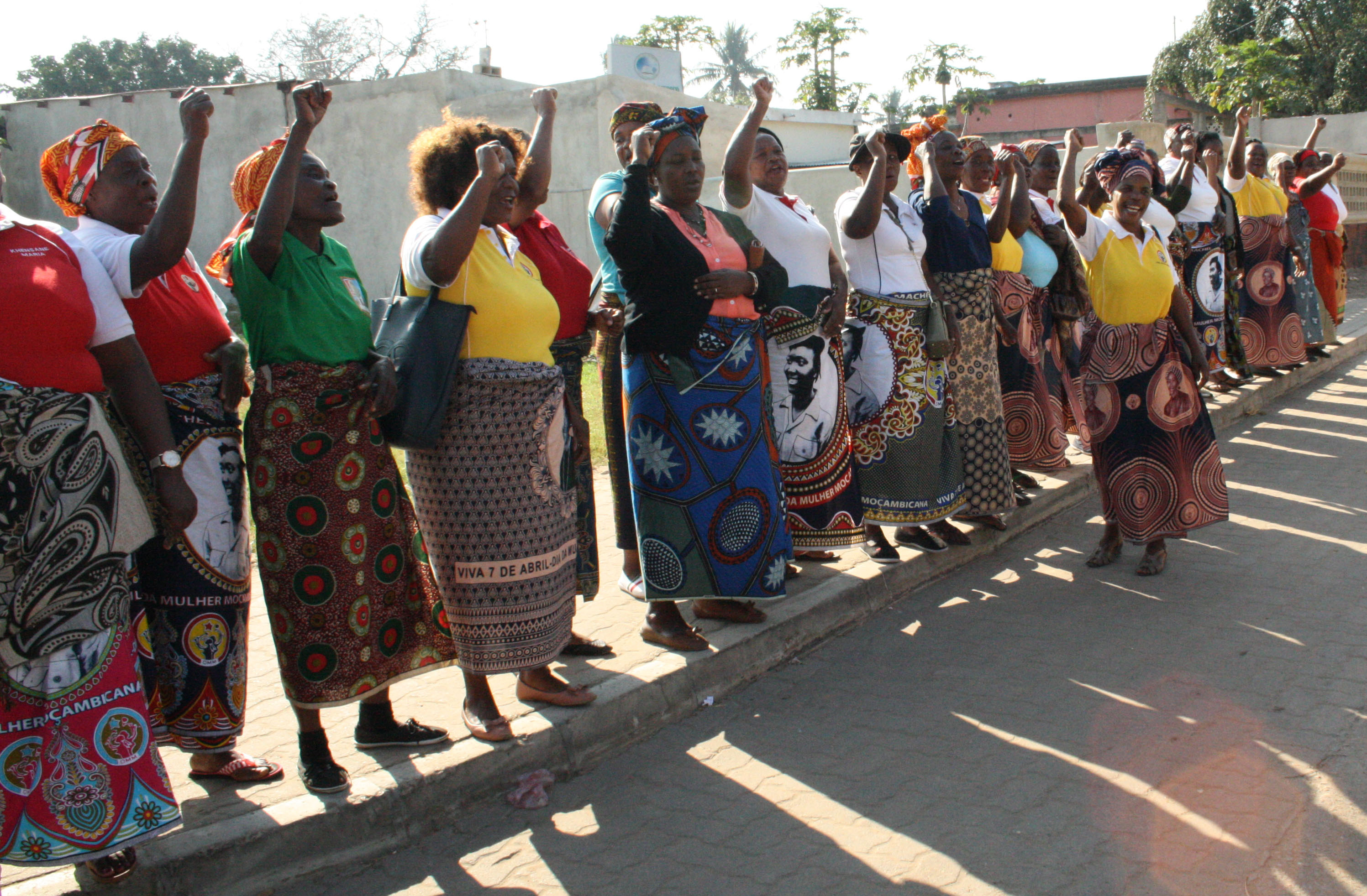 Moçambic. Amb la Independència de Moçambique, varies organitzacions foren creades per acompanyar la nova etapa del país. Una d'elles, l'Organitzçao de Mulheres Moçambicanas, encara perdura a cada un dels barris de Maputo. A cada nova iniciativa de millora del barri, elles mai no hi falten per celebrar-ho i donar la benvinguda, al crit de "Organizaçao das Mulheres Moçambicanas, oé!", "Bairro de George Dimitrov, oé!".