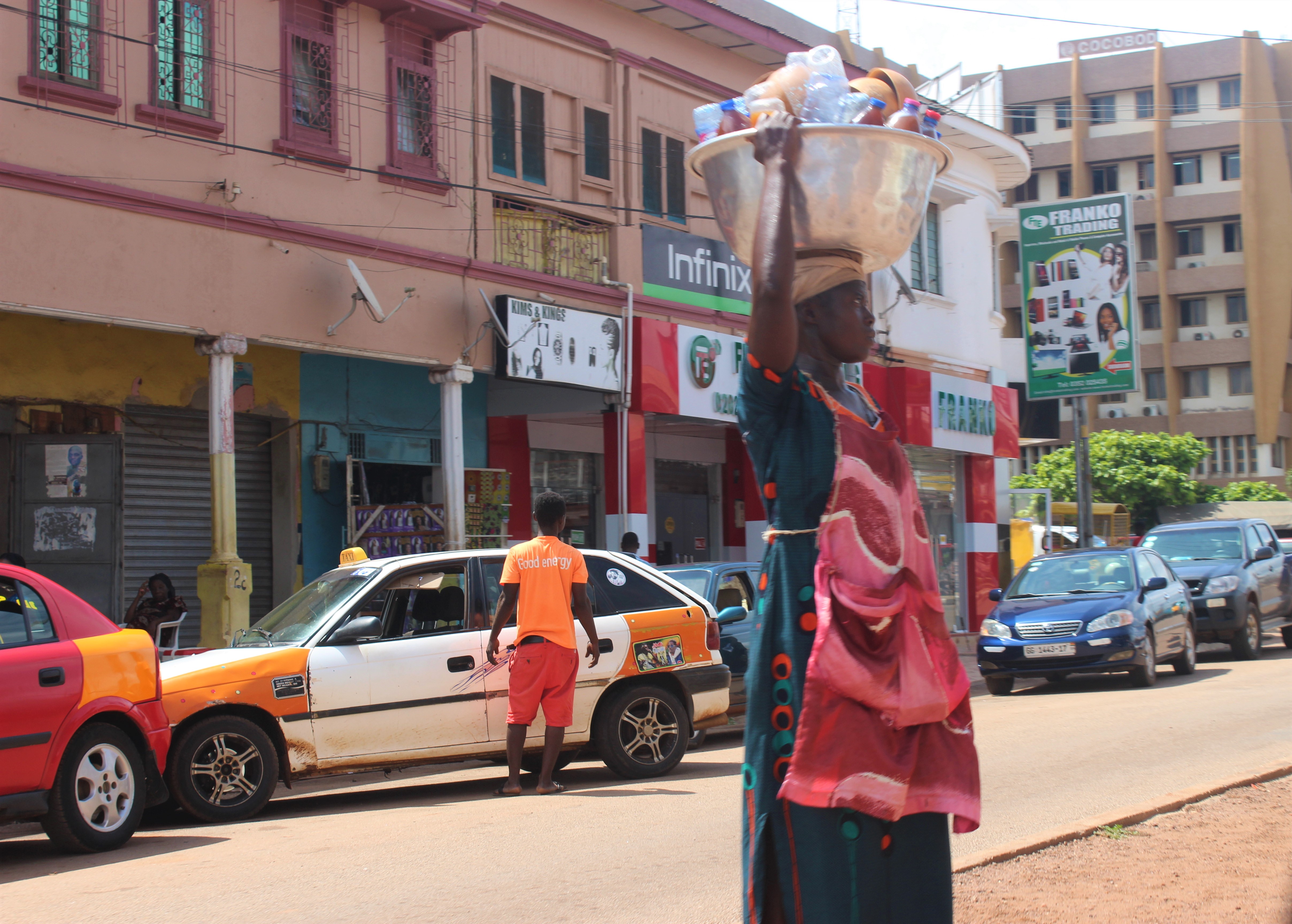 Ghana. La forma més comú que es pot trobar dia a dia per vendre i portar els productes és al cap, grans recipients plens de moltíssimes coses diferents, des de l'aigua que treuen en els pous, fins a les compres de mercat. Cada cosa que fan sempre requereix un gran esforç per part d'aquestes valentes dones.