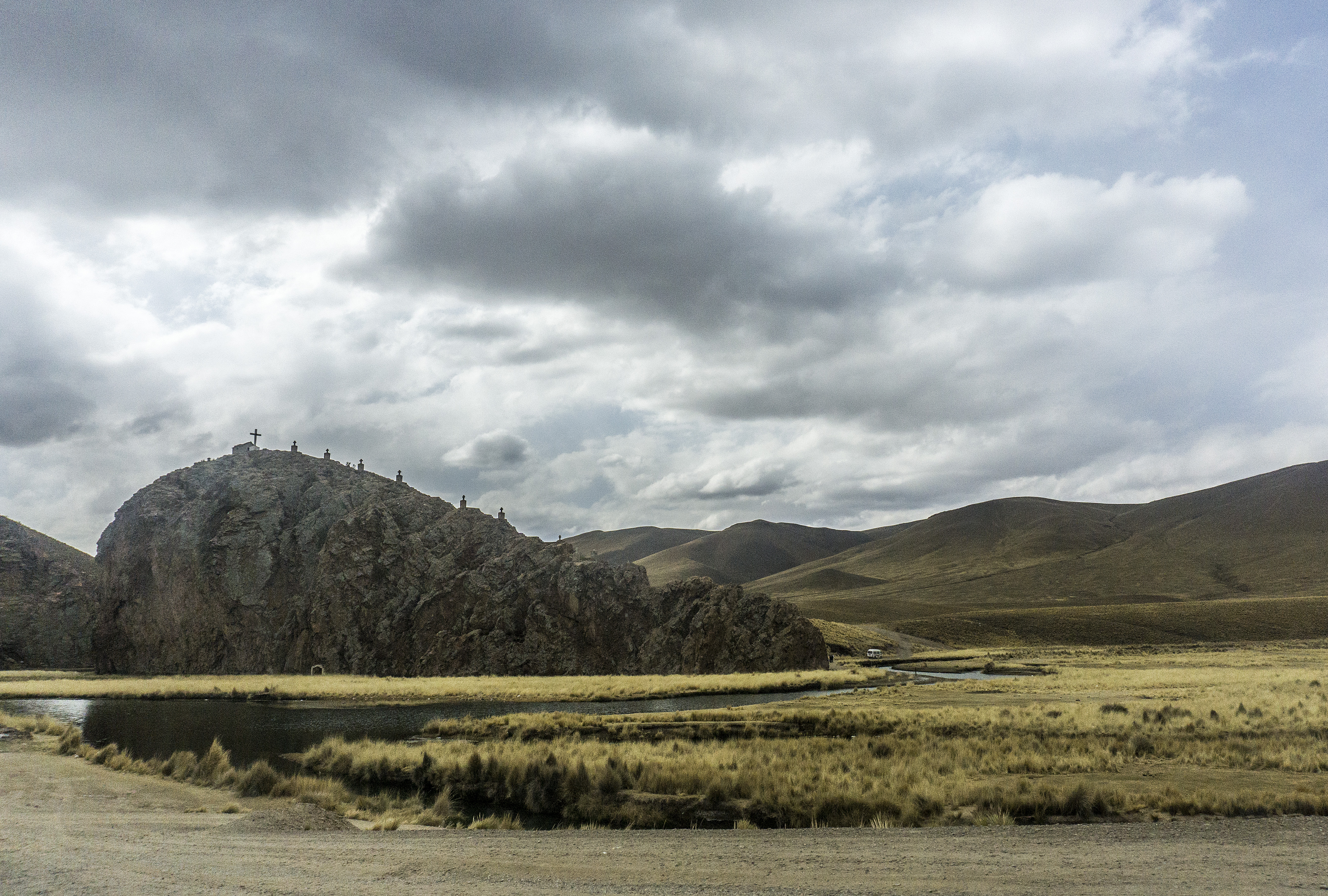 Bolívia. "A pocs quilòmetres d’Oruro (Bolívia), es poden trobar impressionants imatges amb grans paisatges i construccions aïllades de qualsevol civilització. Com en molts altres llocs, la religió té un gran pes en la seva cultura, fins a tal punt que es creen edificis sagrats en zones inhòspites i de difícil accés, on la gent que hi vol accedir ha de fer peregrinacions. A la fotografia s'observa un d'aquests llocs amb multitud de creus que senyalitzen el camí fins a la capella que es troba a la part més alta de la muntanya. "