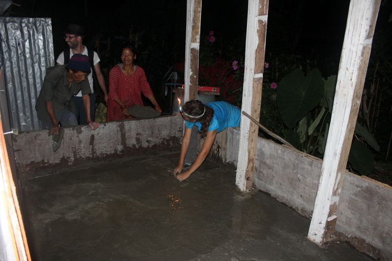 Autor: Marc Crespo. Nepal. En aquesta imatge hi apareixen treballant conjuntament els beneficiaris del projecte amb els voluntaris del projecte a Bhimphedi durant l’octubre de 2016. Podem observar com s’anivella el porxo de la primera casa del programa AWASUKA. Observem a l’Alba donant els tocs finals durant una jornada de treball maratoniana per tal d’acabar la vivenda abans de la festa mes important de Nepal, el Dashain.