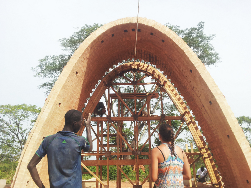 Autor: Miguel Ángel Hernández. Senegal. Moment de crisi a l'obra, el primer arc s'ha finalitzat i es desplaça el cindri per a la construcció del següent. Alguna cosa no va bé, el cindri pateix una petita desviació que fa que els arcs no tinguin exactament la mateixa geometria. Que fem? Parem i donem-li una volta.