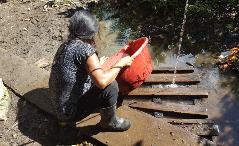 Autor: Eloy Roy. Perú. Una dona renta els grans de cafè, visibilitzant la importància de l'aigua, el treball de la dona a l'agricultura i la falta de recursos per desenvolupar la feina còmodament.