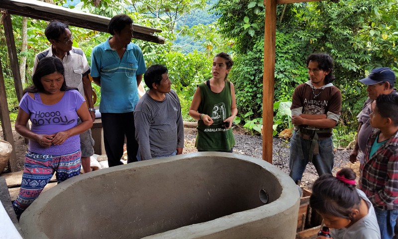 Autor: Eloy Roy. Perú. Tota la família s'interessa per aprendre una manera més còmoda i neta per rentar els grans de cafè al seu nou tanque-tina.