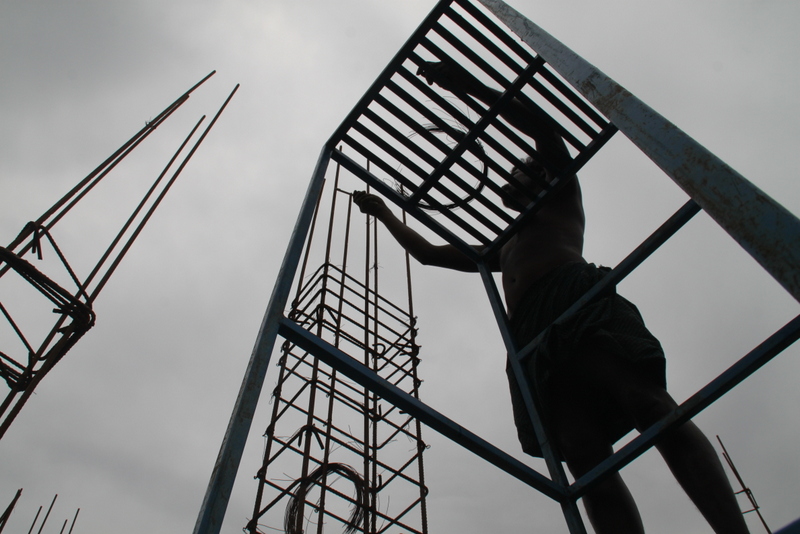 Autora: Elisenda Planell. Índia. La imatge vol transmetre el treball delicat i minuciós que desenvolupen. L’alçada és un repte però res els fa aturar. Armant cap al cel per anar construint el futur del projecte.