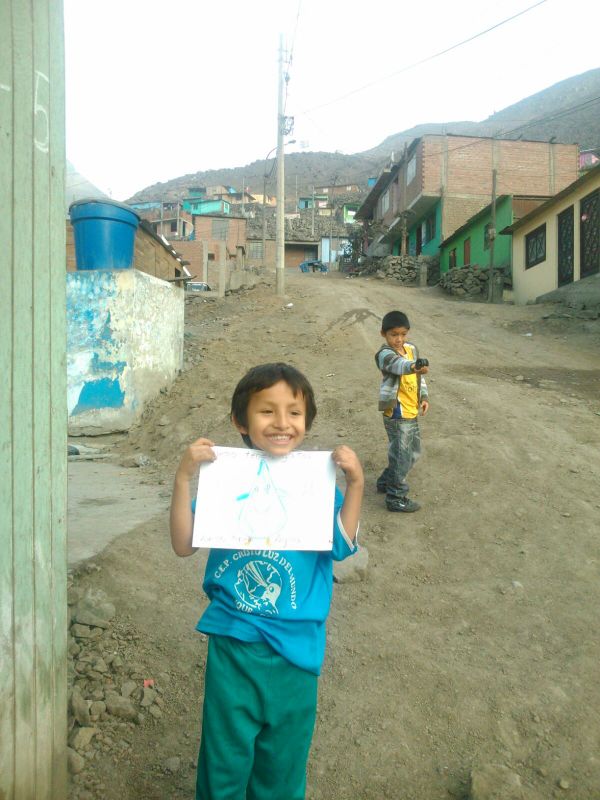 Autora: Tania Gómez. Perú. El pequeño Andrés nos muestra con orgullo el dibujo que hizo mientras su madre participaba con otras mujeres en el taller sobre la Nueva Cultura del Agua, y la diagnosis participativa que desarrollamos en Collique. En su dibujo, Andrés nos muestra que se encuentra preocupado por el agua, nos adoctrina que debemos cuidarla, pero además con su inocencia nos señala que quiere un gato, un hermano de cuatro patas para compartir la vida.