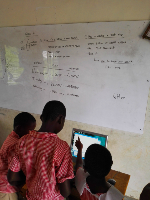 Autor: Pere Camps. Ghana. Fotografia presa en una aula d'una escola allunyada uns 3km de la ciutat de Ho, a la regió del Volta. Es mostra el procés d'autoaprenentatge i col·laboració mútua entre alumnes, al mateix temps que la descoberta de nous conceptes i habilitats.