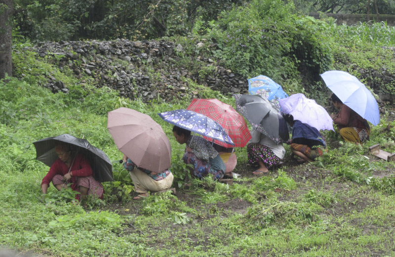 Autor: Adrián Álvarez. Nepal. Un grup de dones nepaleses treballen, com cada matí, en les tasques agrícoles, però avui el dia els ha regalat una intensa pluja, tot i això, cap de les companyes de feina a faltat avui per complir la seva tasca. La necessitat bàsica d’alimentar-se amb la collita del propi dia, es molt superior a esquitxar-te els peus, enfangar-te la roba o mullar-te el cabell. Aquesta divertida imatge de les treballadores enfangades treballant sota un paraigües, personalment em fa posar en crisis, la diferencia que hi ha entre les coses que son importants i les en son d’urgents.