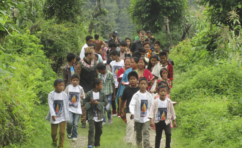 Autor: Adrián Álvarez. Nepal. Feia poc més d’un mes que havíem arribat a Nepal, i vam tenir la sort d’assistir a l'estranyíssim esdeveniment d’una boda Nepalesa entre el Dani, un català encarregat de l’orfenat local, instal·lat al Nepal des de feia 3 anys, i la Manisha, criada a l’allunyat poble de Bhimphedi. A la fotografia s’aprecia el recorregut del Dani cap a casa de la Manisha, i no hi val sol, tots els nens l’acompanyen durant el trajecte, entre somriures i cançons, on també hi som nosaltres, acceptats i integrats a la comunitat, formant part més que mai en un dia tant important per al poble. Ja som família.