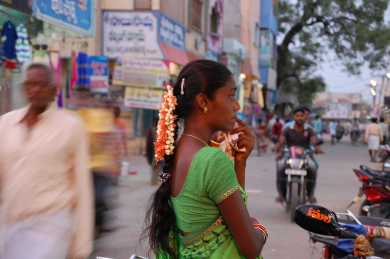 Autora: Andrea Llanas. Índia. El tiempo se detiene para una joven que espera a las puertas de un colegio la salida de una niña, que en su día ella, también fue.