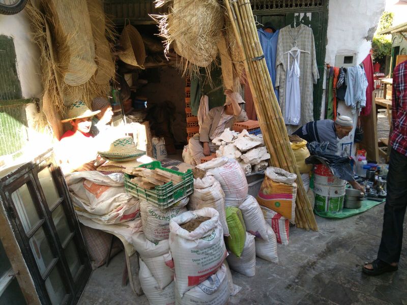 Autor: Joan Ramon Rossell. Marroc. A la Medina de Tetuan s’hi ven de tot. Entre “xil·labes” i olives hi trobem els materials tradicionals de construcció com la calç, que compren en terrossos les dones per a encalar les seves cases, una feina periòdica que proporciona diferents prestacions a les parets: reflecteix el sol, millora el comportament tèrmic, funciona com a fungicida i manté net l’aspecte exterior dels paraments.