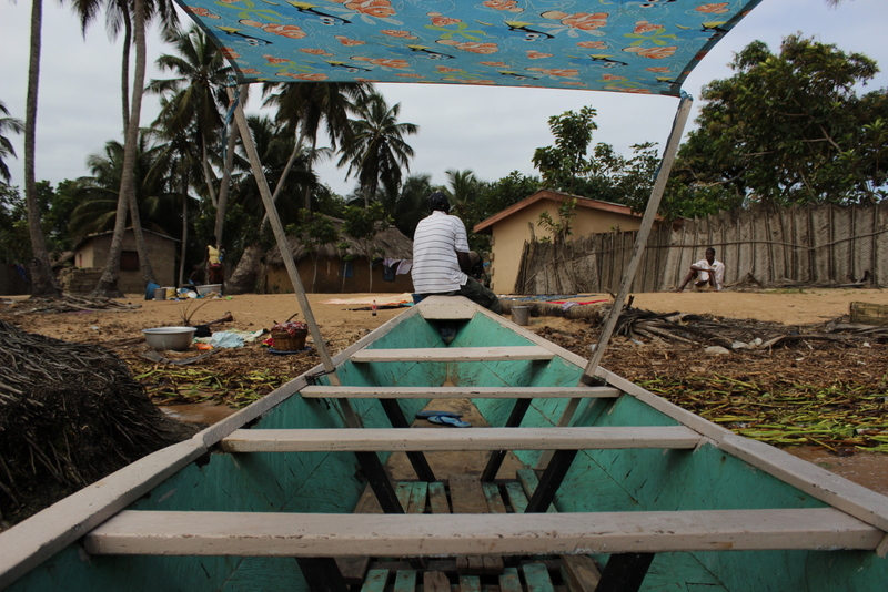 Autora: Laura Rodríguez. Ghana. Amèrica, el barquer que ens portava a l’illa cada dia reposa mentre els voluntaris acaben la seva feina i tornen cap a la barca.