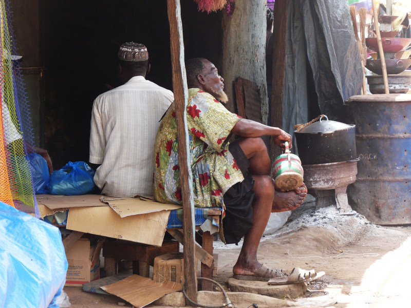 Autor: Lluc Domènech. Gàmbia. L'espera tranquil·la de qui no espera res. Sota el parasol de fulles seques un home amb camisa florejada es renta els peus sense presses, com el gest cerimoniós d'un ritual elegant que omple de llum el moment. La simplicitat, la bellesa de Gàmbia.