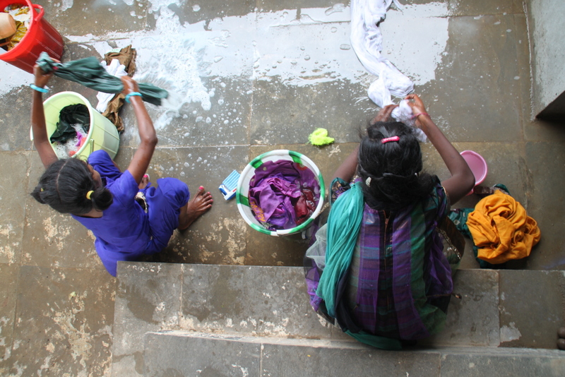 Autora: Elisenda Planell. Índia. La imatge vol mostrar el dia a dia dels nens del centre d’Haribala. Una tasca quotidiana, que al primer món fan unes màquines, a Koilkuntla és un moment de trobada, de xerrameca i de rialles. Autosuficiència i maduresa, que molts nens d’aquí no sabrien gestionar.