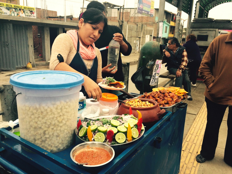 Autora: Tania Gomez. Perú. Parte de la identidad peruana es la comida en la calle, delicias en cada esquina! La aventura de probar lo que te ofrece la calle seguido del inevitable y constante ofrecimiento de los vendedores. De camino a los talleres era común encontrarnos con este tipo de escenas; diversidad de comida, a cualquier hora en cualquier lugar.