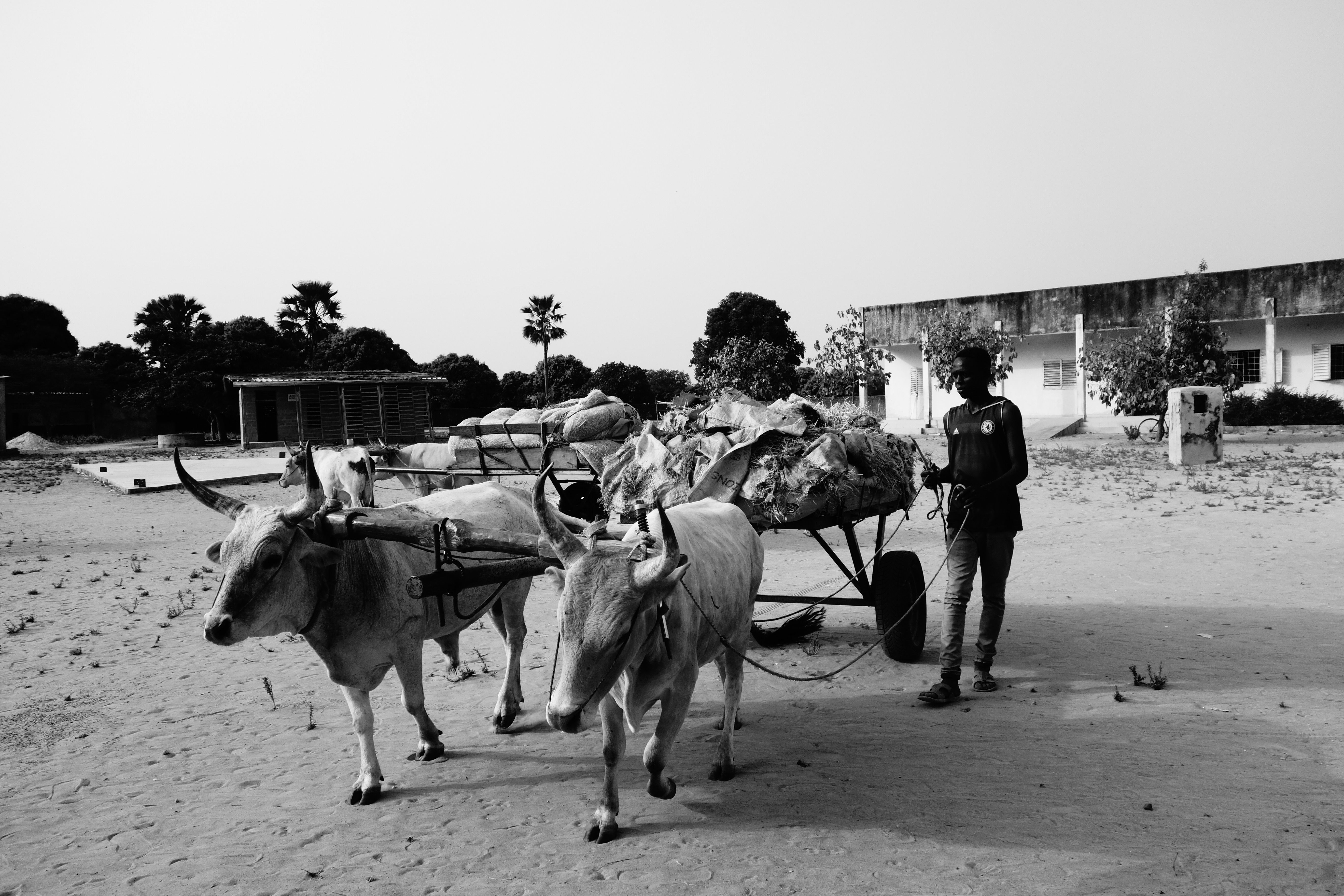 Senegal. Sent mesclada amb terra i aigua, podrem construir els murs amb la tècnica del banqô, la manera tradicional com construeixen els murs d’obra al sud del Senegal. La palla arriba de les plantacions d’arròs més properes, que durant l’estació seca només requereixen paciència, en atesa de les plujes que arribaràn.