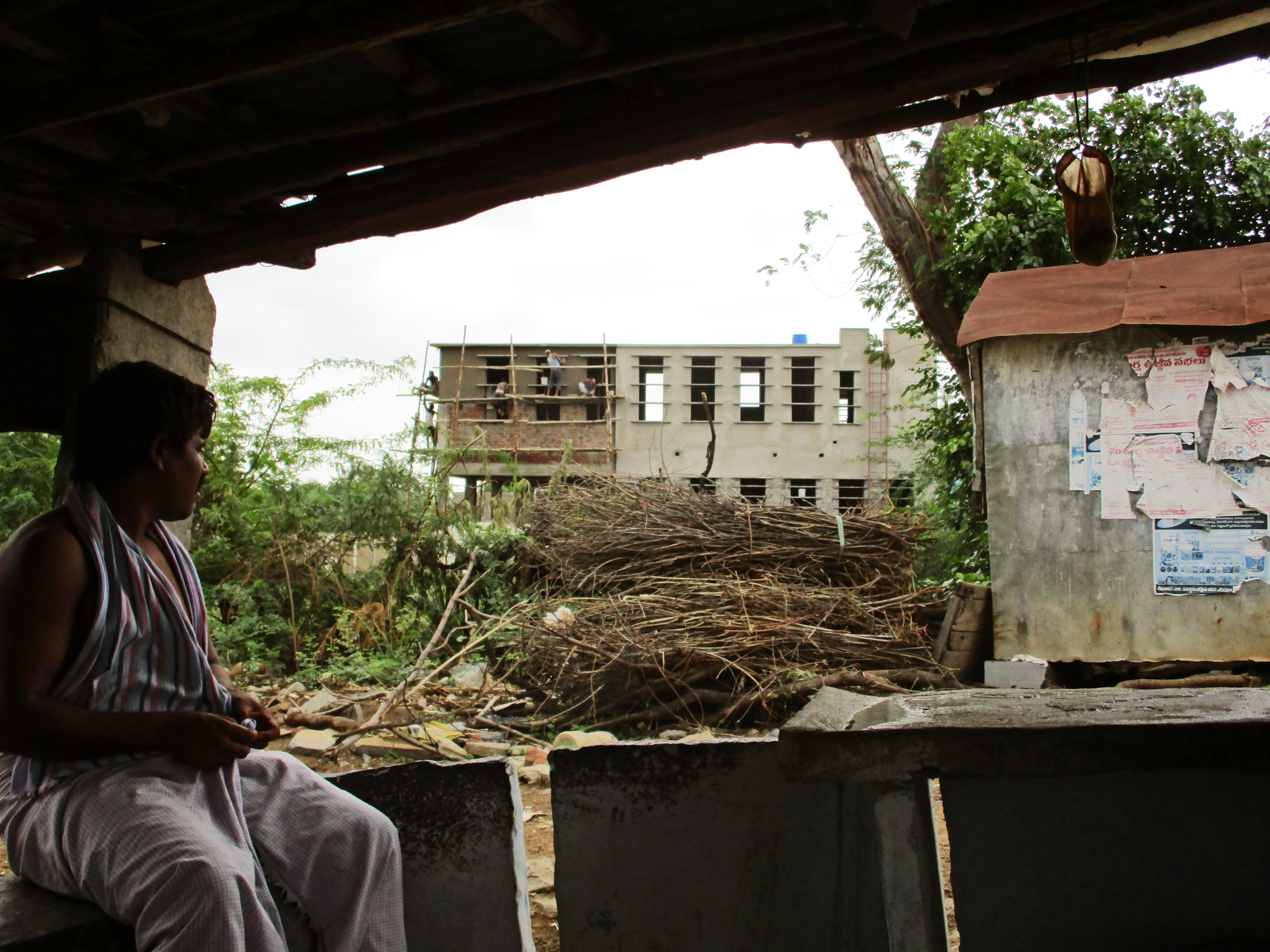 Índia. Controlant l'obra sota la tranquil·liat del cobert del bar de l'Obles.