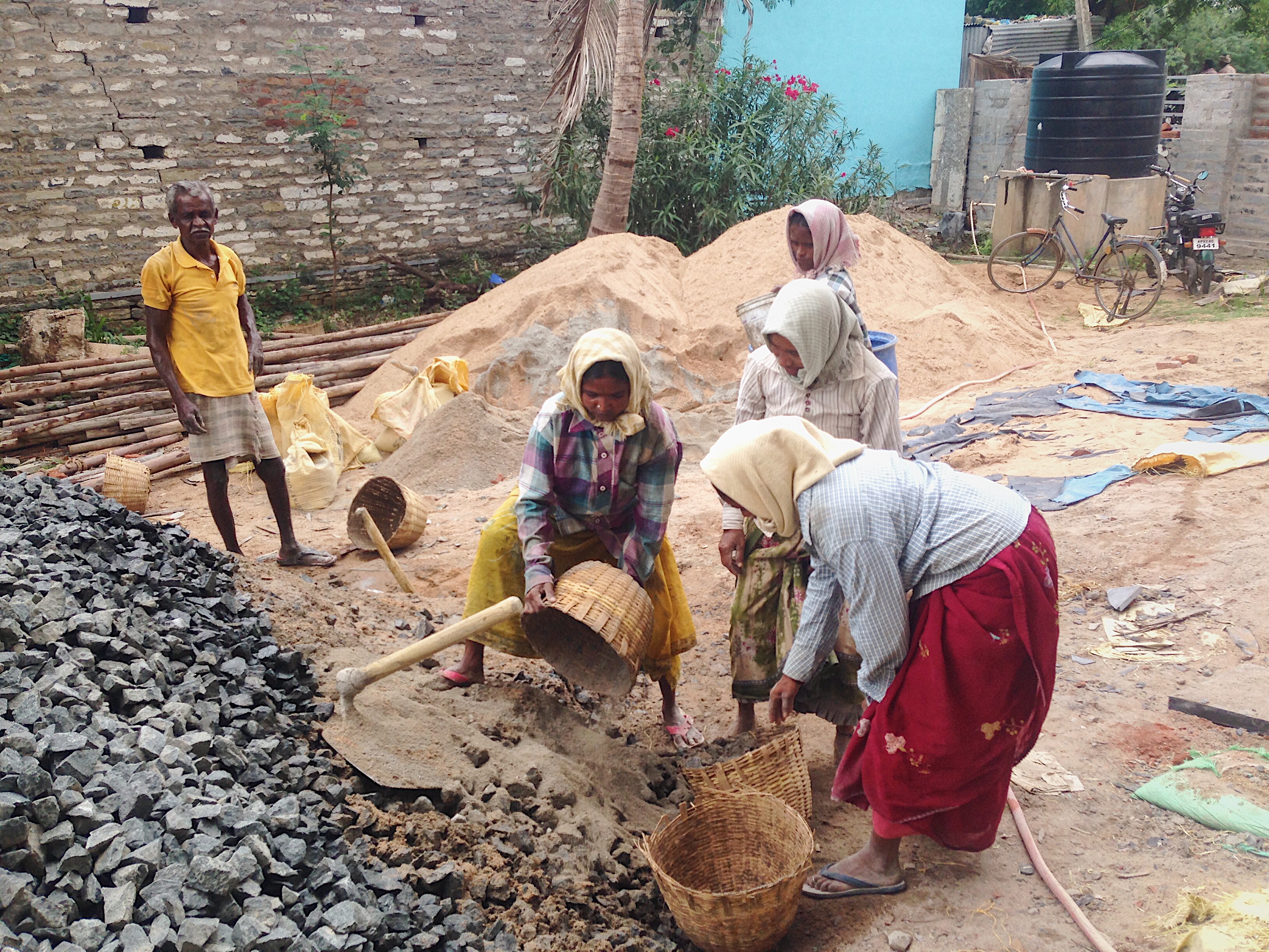 Índia. A la Índia les maquines en obra són casi inexistents. Treballs que aquí a Europa serien inimaginables no fer amb l’ajuda d’alguna eina mecanitzada allà es fan amb les mans, amb força física, amb enginy i amb molta perceberància. A la foto podem observar com un grup de “levers” estan fent la barreja necessària per poder fer ciment. Les castes a la Índia es van abolir per el Govern fa uns 10 anys, però malauradament aquesta diferència social encara està molt arrelada a la societat i més en aquest territori tan rural. Els levers són els treballadors que realitzen els treballs més durs, desagradables i més mal pagats. Treballen en tots els sectors: a la construcción, al camp a la industria, etc. Generalment són homes grans i dones que pertanyien a la casta dels intocables (la casta més baixa de totes). A l’obra, feien les feines que els treballadors es negaven a fer, com per exemple fer la barreja per fer ciment, descarregar pedres, sacs de ciment i omplir de terres les cimentacions. Moltes petites feines que sense ells l’obra no s’hagués pogut desenvolupar.