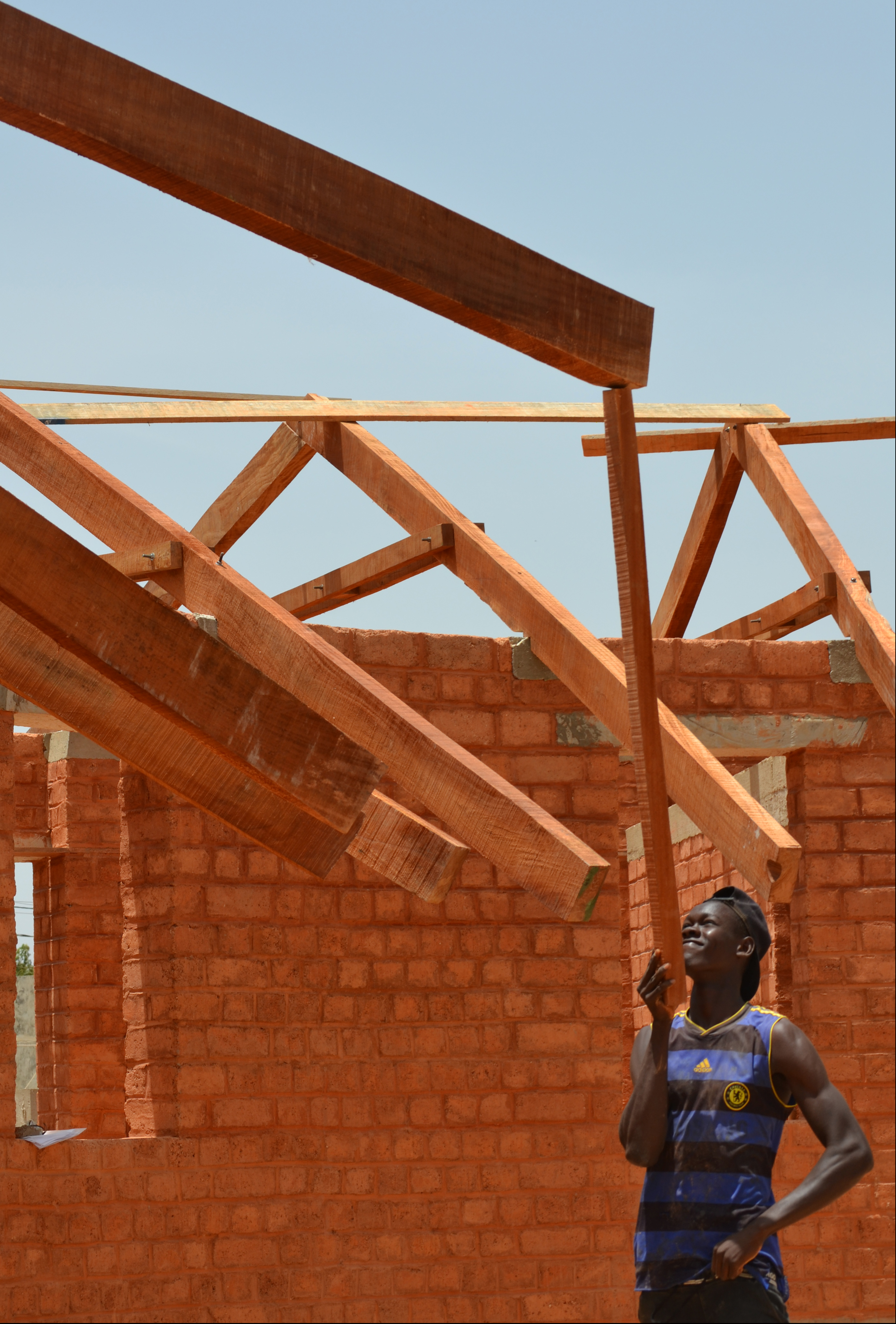 Senegal. “Ici au Senegal, il n'y a pas des grues. C'est n'est pas comme a l'Europe, vousavez des machines qui font tout le travail pendant que vous regardez la chantier; maisici, ici au Senegal, ce (senyalant-se el braç) sont les grues” Ibnou Sarr, fuster deN'Dangane Sambou