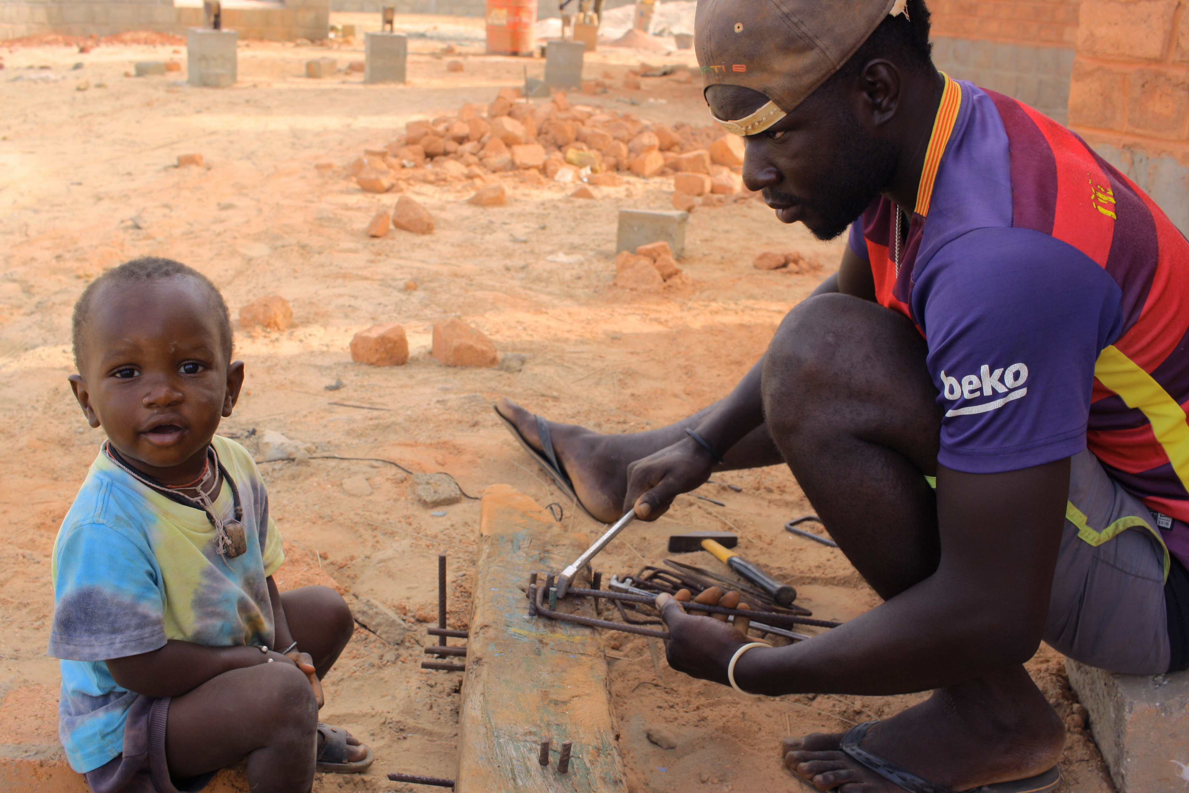 Senegal. En Khadim amb només un any i mig imita tot el que el seu tiet, el cap d'obra, fa. Aprendre, aprendre i aprendre fins que algú li diu el contrari.