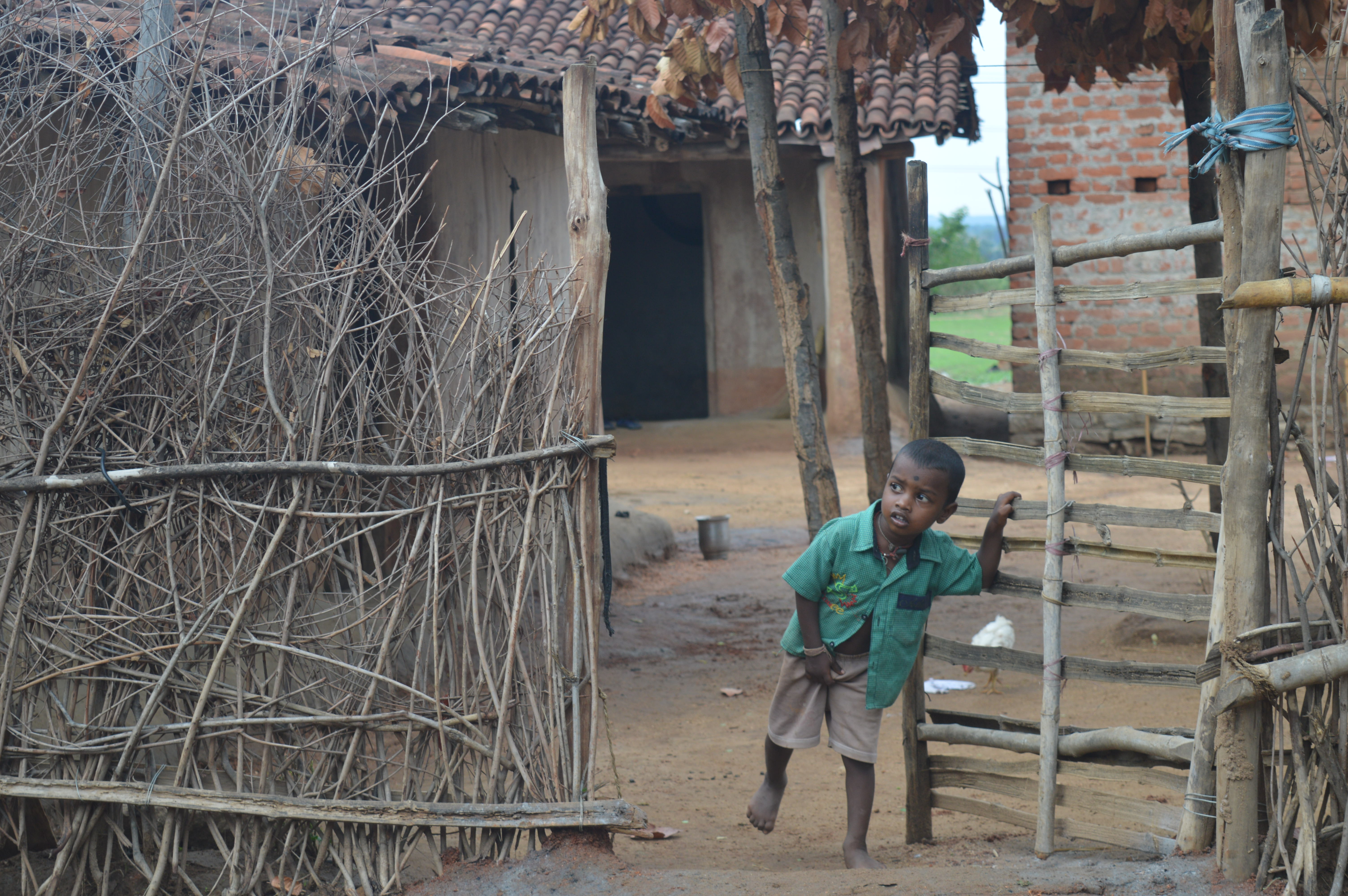 Índia. Un infant treu el cap encuriosit, tot mirant amb estranyesa el grup de gent que s’apropa a casa seva amb intenció de fer preguntes sobre hàbits i necessitats energètiques.