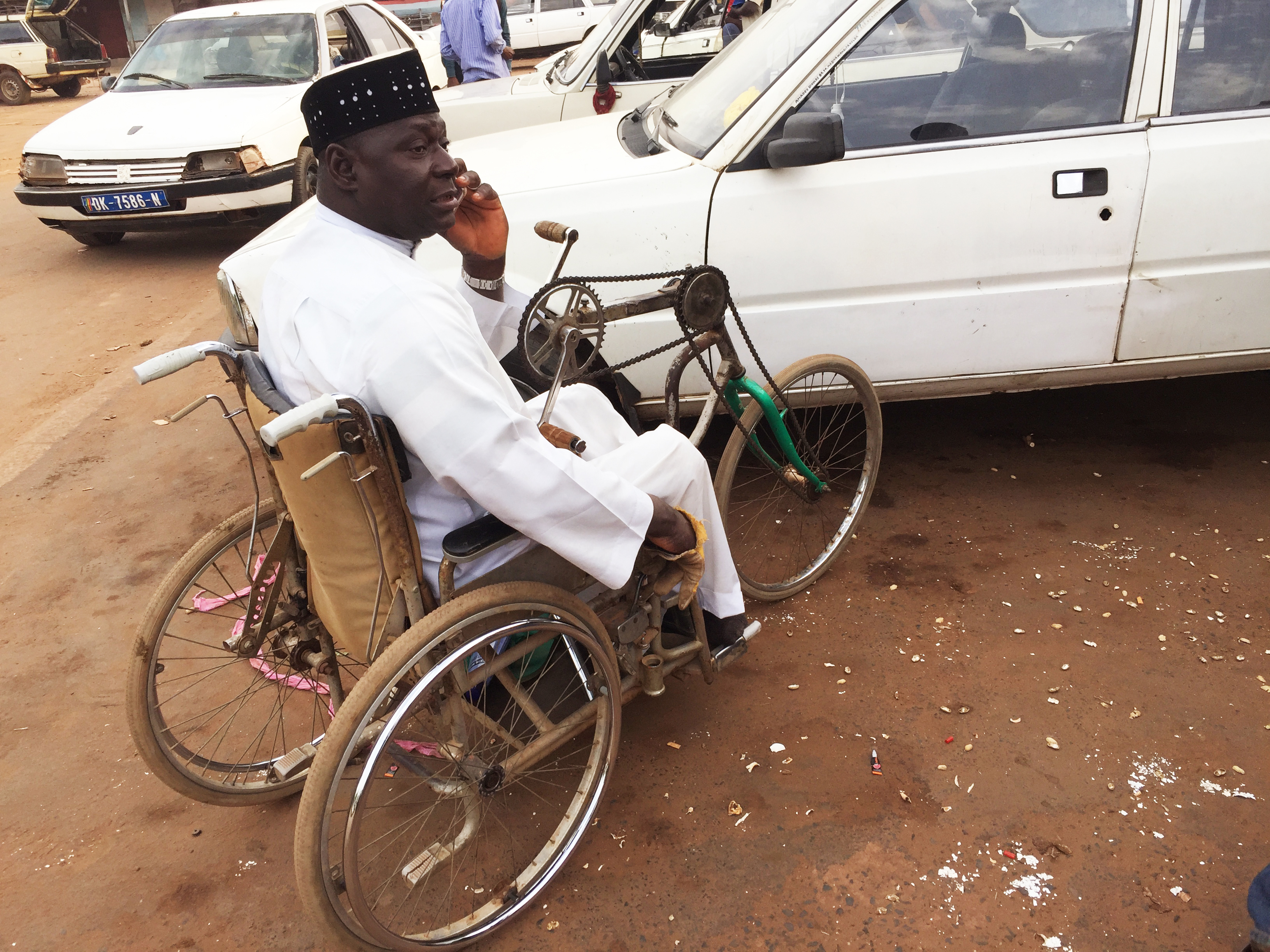 Senegal. Mentres esperava el meu setplace, un home seia en una cadira de rodes que ell mateix havia construït. Una de les coses que més m’ha impressionat del Senegal és la integració absoluta en la societat de les persones discapacitades.