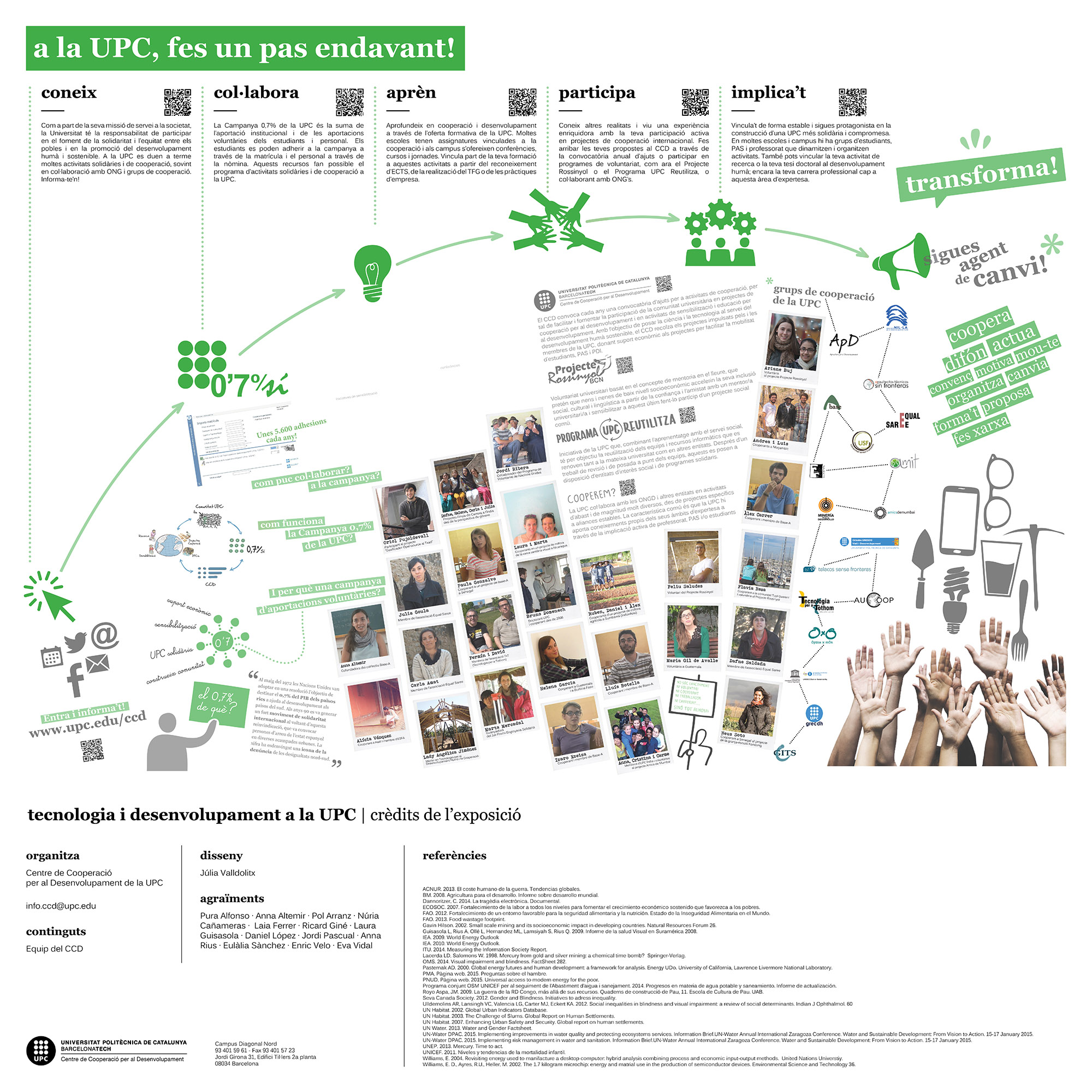 Aquesta exposició, elaborada pel CCD al 2015, té per objectiu acostar al públic universitari la vinculació entre tecnologia i cooperació per al desenvolupament, i donar eines per acostar-se i conèixer el treball que la comunitat universitària duu a terme en aquesta temàtica.